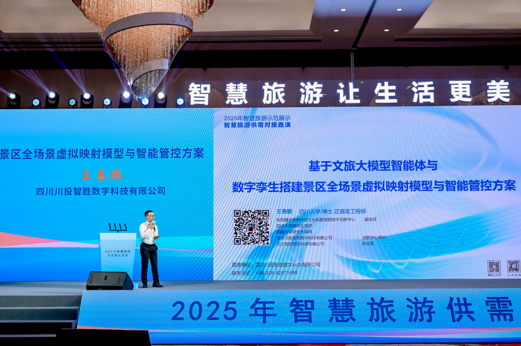 10月28日至29日,由文化和旅游部資源開發(fā)司與江蘇省文化和旅游廳、無錫市人民政府共同主辦的“2025年智慧旅游示范展示活動”在江蘇無錫隆重舉行。作為智慧旅游領(lǐng)域的年度盛會,本次活動以“智慧旅游讓生活更美好”為主題,展示智慧旅游發(fā)展成果,推動示范引領(lǐng)和供需對接,進一步推動《智慧旅游創(chuàng)新發(fā)展行動計劃》落地見效。四川川投智勝數(shù)字科技有限公司(以下簡稱“川投數(shù)科”)憑借“基于文旅大模型智能體與數(shù)字孿生的景區(qū)全場景虛擬映射模型與智能管控方案”,再次驚艷亮相,成為行業(yè)焦點。作為四川能源發(fā)展集團旗下所屬川投信息產(chǎn)業(yè)集團有限公司控股的技術(shù)型領(lǐng)軍企業(yè),川投數(shù)科連續(xù)三年受邀參會,其路演的創(chuàng)新實踐案例獲得了專家團隊高度認可,成為行業(yè)標桿案例。