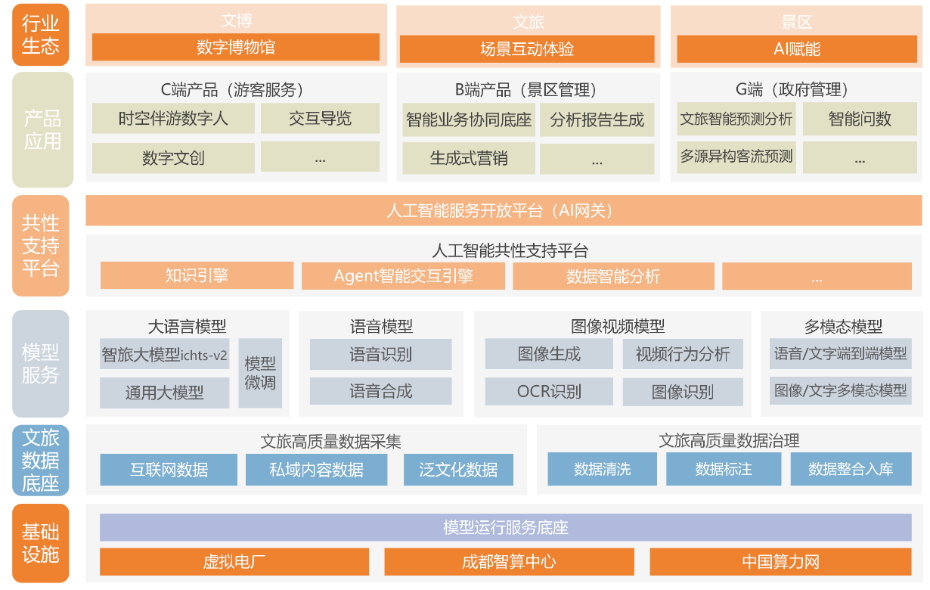"智旅"大模型依托成都智算中心澎湃算力,構(gòu)建“智算中心+模型運(yùn)行服務(wù)底座”基礎(chǔ)設(shè)施體系,實現(xiàn)按需調(diào)度、靈活部署,滿足文旅全場景的算力需求。