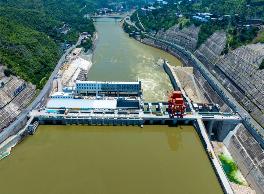 項(xiàng)目裝機(jī)39萬千瓦,最大壩高73米,總投資60.27億元。目前大壩廠房工程全線澆筑到頂,1~3號機(jī)組已投產(chǎn)發(fā)電,攔污柵、進(jìn)口檢修門、尾水事故檢修門已完成安裝,1~6號弧形工作門已完成安裝,正在推進(jìn)4號機(jī)組無水調(diào)試以及7號弧形工作門安裝工作。
