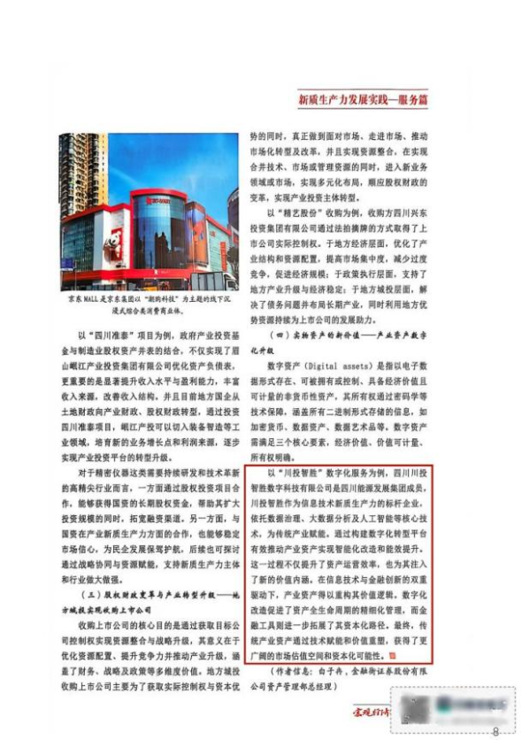 近日,國家發(fā)展和改革委員會主管主辦的國家級核心期刊(CSSCI收錄)《宏觀經(jīng)濟管理》“百城千企”新質(zhì)生產(chǎn)力發(fā)展實踐專刊正式發(fā)布,四川能源發(fā)展集團所屬川投信產(chǎn)旗下川投數(shù)科憑借在信息技術領域的技術突破與實踐創(chuàng)新成功入選,作為新質(zhì)生產(chǎn)力典型企業(yè),其以數(shù)據(jù)“智”理為核心的產(chǎn)業(yè)賦能成果獲權威認可。